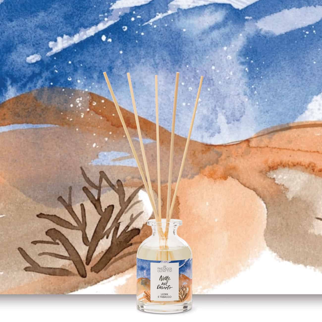 ✔️NOTTE NEL DESERTO – BOIS ET TABAC : évoque une atmosphère chaude et mystérieuse, typique d’un désert étoilé illuminé par la lune. Les notes boisées et l’accord tabac créent un arôme intense et sensuel, qui enivre les sens. Cette fragrance est parfaite pour instaurer une ambiance intime et envoûtante dans n’importe quelle pièce de la maison, en particulier dans le salon et le bureau.