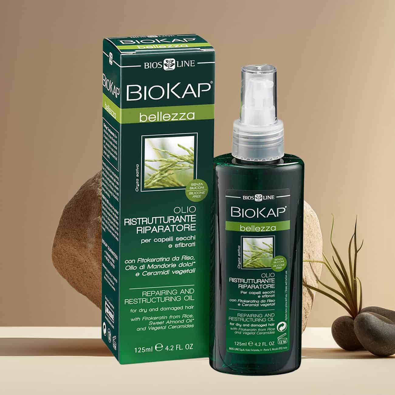 FitoKératine de riz BioKap® : restructure la barrière naturelle du cheveu et renforce sa résistance.