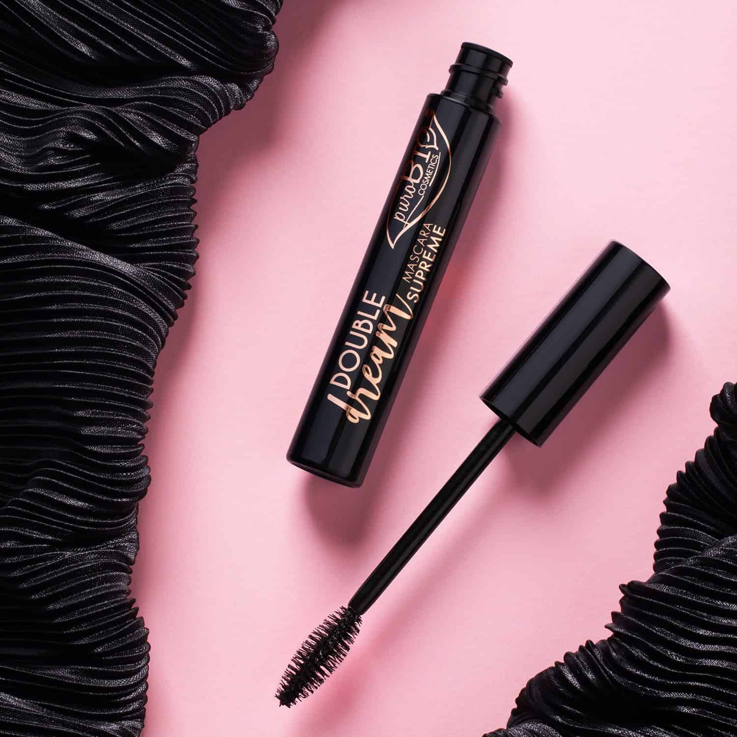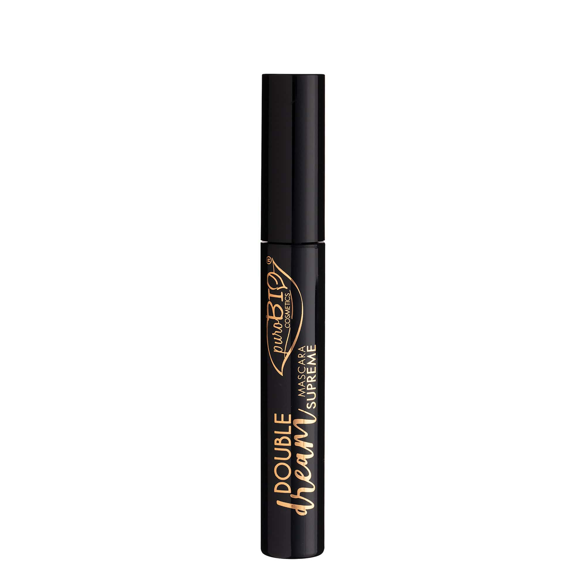 Le mascara Bio recourbant Double Dream Supreme noir Intense de puroBIO Cosmetics est conçu pour allier courbure extrême, volume intense et soin des cils. Grâce à sa formule enrichie en cire d’abeille bio, huile d’argan et peptides de pois, ce mascara enveloppe chaque cil d’un noir profond tout en les fortifiant jour après jour. Sa texture crémeuse permet une application fluide et homogène, sans paquets, pour un regard irrésistiblement ouvert et défini.