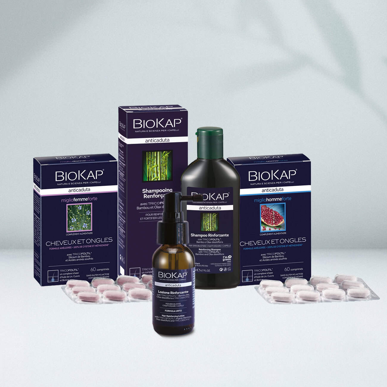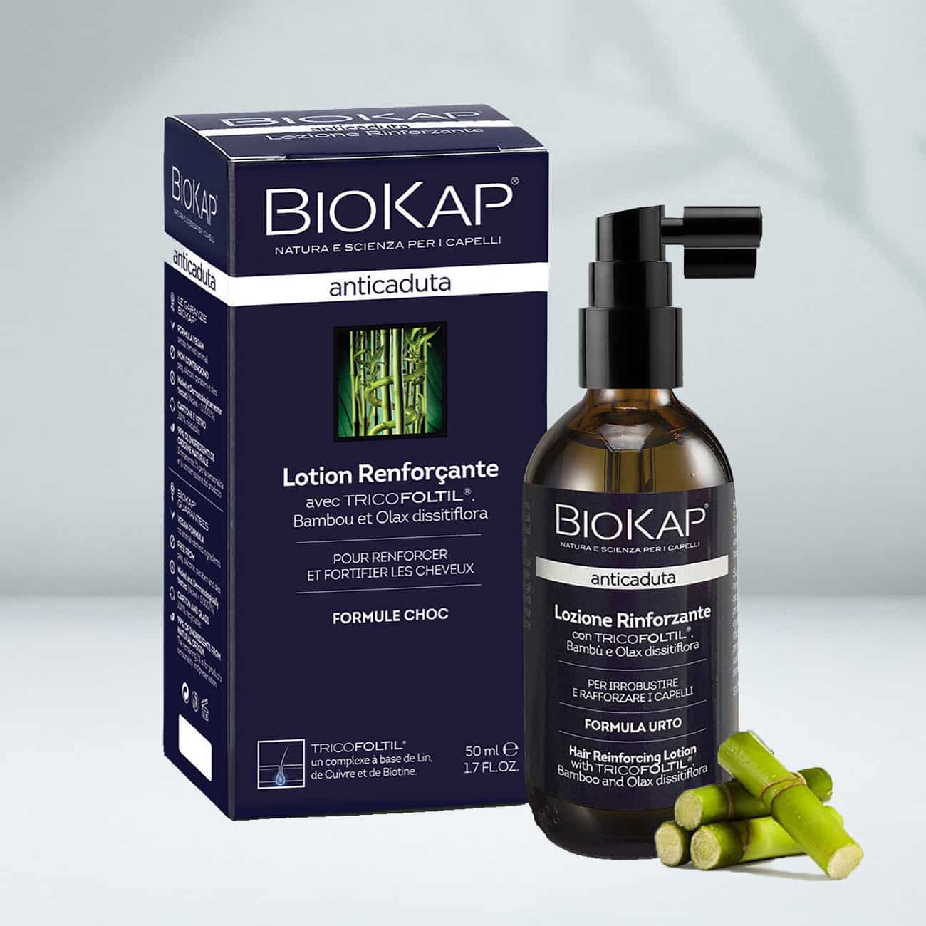 <p><span style="color: #000000"><strong>Lotion renforçante :</strong>alcohol denat., aqua/ water, glycerin, cucurbita pepo (pumpkin) seed extract, ethyl ximenynate, alcohol, maltodextrin, cinchona succirubra bark extract, niacinamide, serenoa serrulata fruit extract, capsicum annuum extract, ethyl nicotinate, olax dissitiflora root oil, rosmarinus officinalis leaf oil*/ rosmarinus officinalis (rosemary) leaf oil*, melaleuca alternifolia leaf oil*/ melaleuca alternifolia (tea tree) leaf oil*, vitis vinifera leaf extract*/ vitis vinifera (grape) leaf extract*, achillea millefolium extract, bambusa vulgaris leaf/stem extract, urtica dioica extract/ urtica dioica (nettle) extract, linum usitatissimum seed extract/ linum usitatissimum (linseed) seed extract, sodium hydroxide, copper acetylmethionate, biotin, limonene, decyl glucoside, dicaprylyl ether, benzyl alcohol, glyceryl oleate, sodium sulfate, ci 19140/ yellow 5, ci 42090/ blue 1* da agricoltura biologica / from organic farming.</span></p>