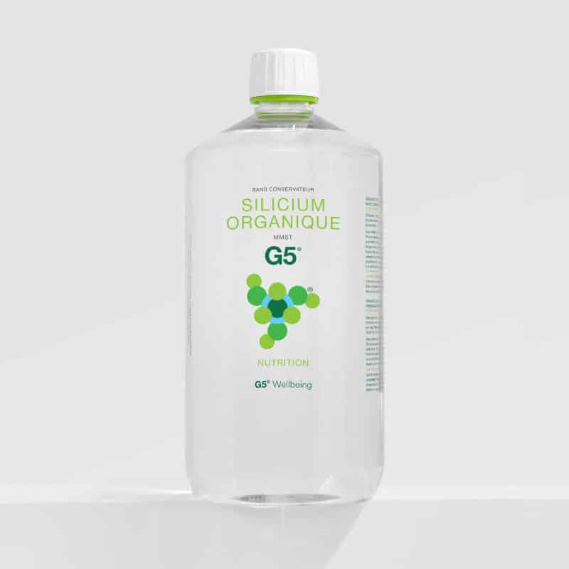 Avec le temps, notre organisme produit de moins en moins de silicium organique, un oligo-élément essentiel au bon fonctionnement de nombreuses fonctions biologiques. Ce minéral joue un rôle crucial dans la santé et la vitalité des tissus conjonctifs, tels que les articulations, la peau, les os, les cheveux et les ongles. Le Silicium Organique G5®, sous forme de MMST (monométhylsilanetriol), est une solution innovante et hautement assimilable qui permet de compenser cette baisse naturelle et de soutenir efficacement ces tissus.